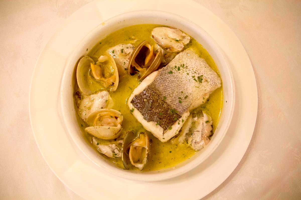 Los lomos de merluza con kokotxas y almejas sigue siendo el rey de la carta desde los 60's.